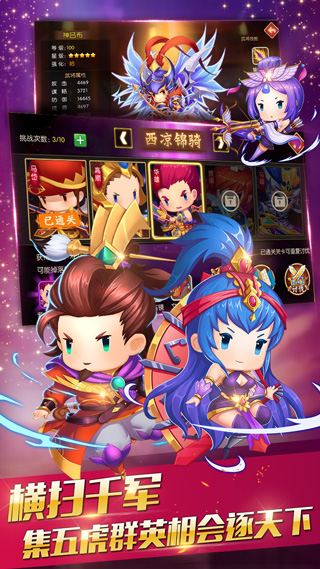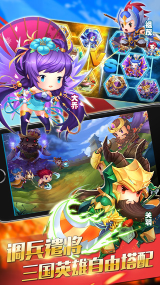 画面清新亮丽,超可爱的Q版人物造型,三国Q版风格游戏,超萌时装秀,让你成为走在前沿的潮流。