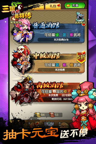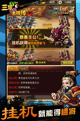 首款挂机类三国卡牌网游,挂机就送橙将,经验,银币等大量奖励。