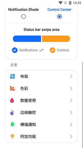 组合的通知和快速切换,或与控制中心分开,类似于MIUI 12+。