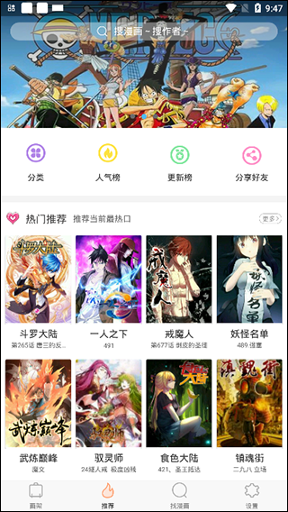 2、在推荐界面可以看到大家都在追的漫画作品,还有最新入库的作品;