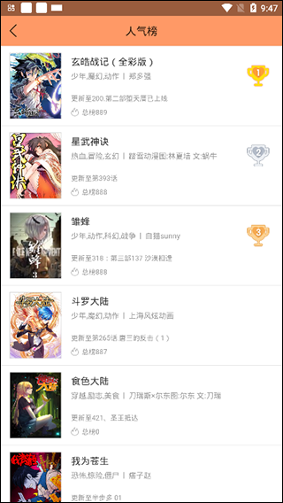 5、清爽简洁的界面设计,打造最为真实的观漫环境,享受掌上阅读的无穷乐趣。