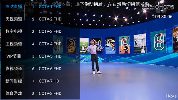 3、观看直播电视的时候,用户可以选择直播路线和画质;