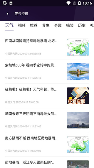 想要在假日出行, 一定要了解天气情况,这样才不会出现各种意外,让你可以在一个阳光明媚的日子进行出游,而小编为你带来一个掌上天文台工具,它就是中国天气最新版,这个程序为用户提供了全国各个地区城市的天气播报功能,让用户可以在这个程序的帮助下,在出行之前查询当前城市的天气情况,而且这个程序提供了长期预报的功能,你可以查询到未来15天的天气情况,所有数据均由国家气象局提供,因此在准确性方面有足够的保证,并且中国天气手机版还提供了城市定位的功能,用户在开启了手机的GPS定位功能以后,如果你变换了城市或者是来到不一样的城市出差,那么你就可以定位获取天气信息,让你知道今天的天气情况,不是晴空万里还是阴云密布用户都可以快速知道,赶快试试吧。