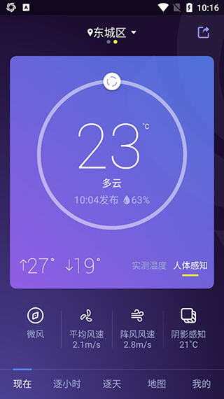10、现在天气:实时丰富全面的气象要素供你选择,超出你的想象。