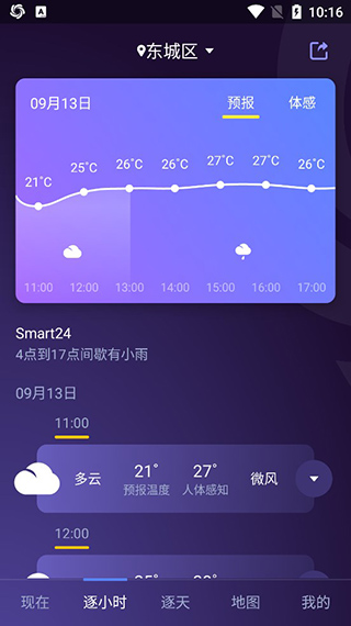 4、而且还支持逐小时查看天气情况,未来天气一目了然。