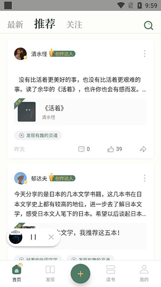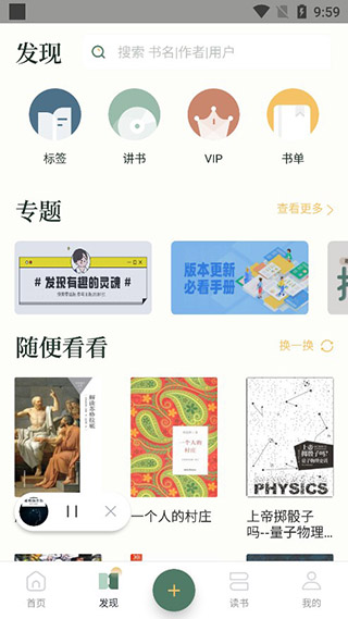 2、读书社交:你可以找到藏书达人、读同一本书的人,也可以找到附近的读书人,从“人找书”到“书找人”到“人找人”,体会以书为纽带的社交乐趣;