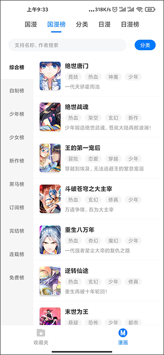 2、首页上所呈现的榜单还根据漫画类型做了分类,诸位在搜索的时候花费的时间精力都很少。