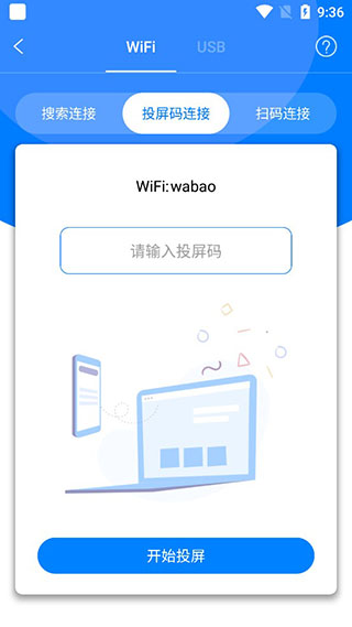 2、我们可以通过输入投屏码的方式和电脑连接;