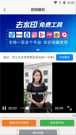 2、支持无水印视频的一键分析和提取,使用方便快捷;