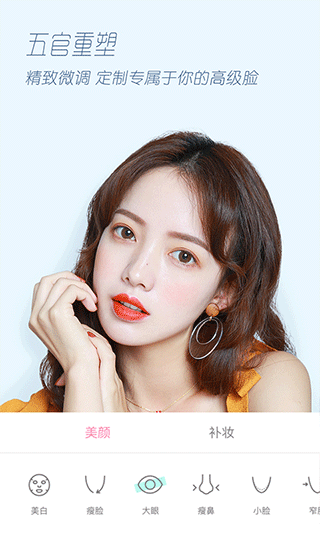 5.除了滤镜,美颜也是必不可少的,这里的美颜简直出神入化,没有不能动的地方,瘦脸都是小事儿,在美颜之后还可以进行补妆,满足不同用户对风格的要求。