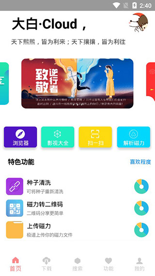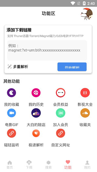 1、支持磁力链接搜索功能,包括ed2k、种子、http、https协议等磁力工具;