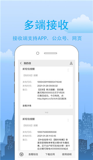 4.只要你手上的手机登录了APP账户即可实时收到未读短信内容。
