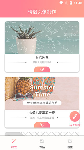 对于很多网友来说,总是喜欢通过各种个性头像来装扮自己的个人社交账户,而情侣也会选择各种各样的头像来衬托他们之间的甜蜜关系,想要寻找精美头像的网友,小编为你准备了这款情侣头像制作app,这个程序为用户提供了丰富的头像图片和头像制作的功能支持,让用户可以在这个程序中通过专业的制作模式将一些来自网络的图片通过专业编辑模式,让用户可以将一些网络图片进行编辑加工,从而制作为个性的头像,所以很多情侣用户都选择使用这个程序来制作各种搞怪趣味的头像来彰显他们的感情,如果你也想要通过这个程序来制作头像的话,那么就赶快安装这个情侣头像制作app,让你可以在这个程序的帮助下,接近制作各种头像和寻找趣味头像的问题,让你可以每天都使用不同的头像来彰显个性。