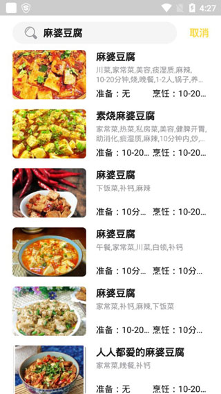 2.一键搜索功能,让你轻松的快速找到你想做的菜。