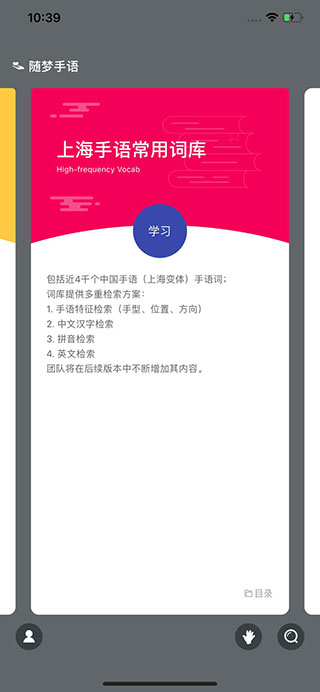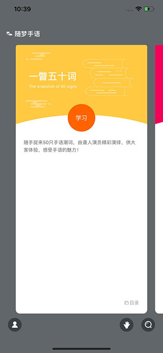 5、在学习潮词手语知识的时候,还能查看目录信息,选择性学习喜欢的潮词知识。