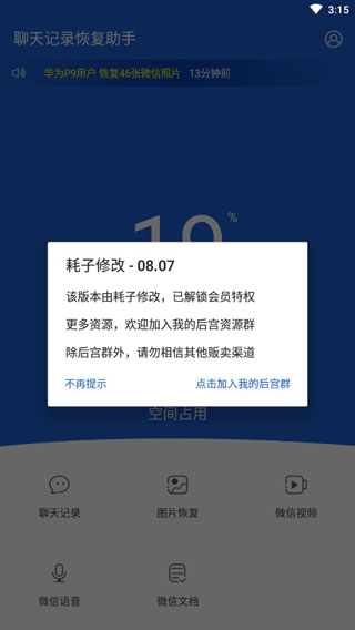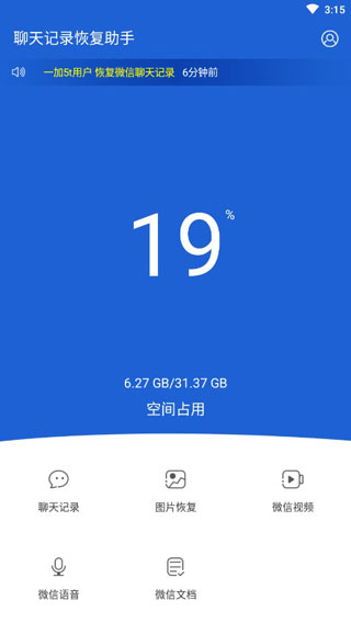 聊天记录恢复助手app支持帮助用户恢复聊天记录、微信视频、微信图片、微信语音、微信文档等数据内容,轻松找回各种误删的重要信息和文件,致力满足用户的使用需求。