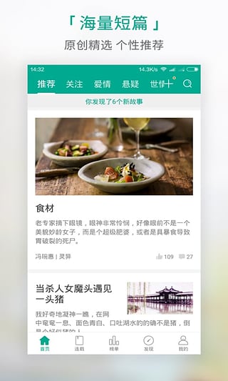 千位独家签约作者,海量王牌故事;智能推荐引擎,识别你的阅读兴趣,看你想看。