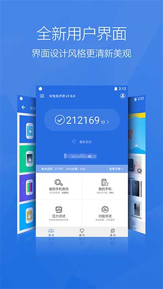 1、【性能跑分】全新震撼3D场景,丰富体验测试项,结果真实反映手机性能;