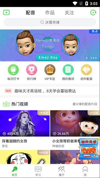 英语的口语练习是很多英语学习人士比较头疼的问题,因为缺少一个锻炼的环境和正确的方式,如果你想要培养自己的语感和口音,可以试试这款英语趣配音app,作为一个有着丰富配音视频素材的平台,用户可以在这个平台中看到各种各样的优秀英语原声片段,让用户可以通过字母配音或者是观看视频的方式,让用户可以跟着进行口语锻炼,因为是英语原声所以在口音方面是标准的美式英语,而且用户可以调整整体的语速,让你可以通过反复收听的方式来掌握重要的英语口语练习,不仅如此,这个英语趣配音app还加入了录制的功能,用户可以在播放视频并且用户进行配音的整个过程进行录制,让你可以在完成配音以后,听听看自己在这个视频中配音的整体演出效果,欢迎各位用户使用。
