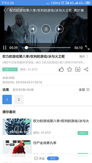 丰富剧集资源:它为用户提供国内外剧集、电视剧、电影和综艺等丰富的视频资源,让您不错过任何精彩剧集。