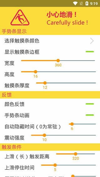 3.之后就可以在高级设置自定义手势操作了,包括悬浮窗的大小、颜色、是否自动隐藏、滑动距离等;