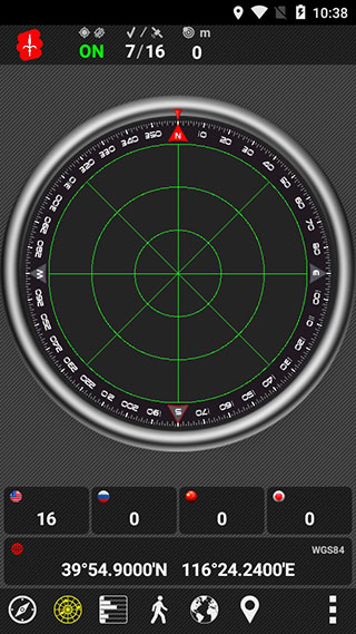 2、显示当前接收到的gps卫星数量,信号强度,方位,显示你的gps坐标,指南针功能。