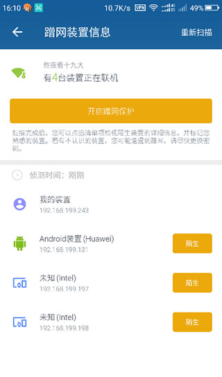 快速检测连接到当前wifi热点的所有设备信息。