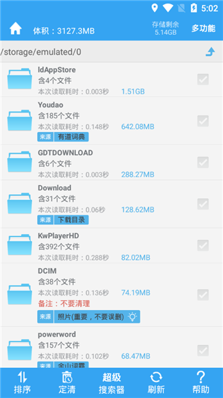 一键显示多余的空文件夹,方便空间清理,让手机运行更顺畅。