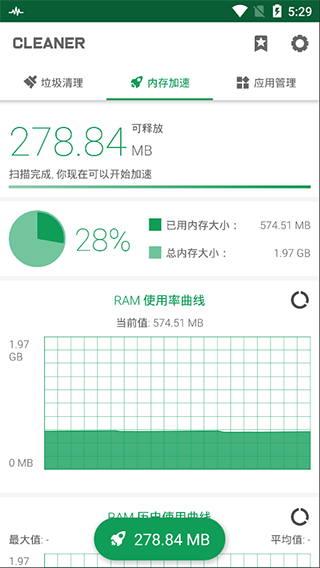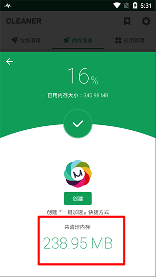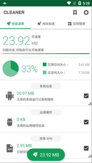 6、强力清理手机软件大小仅5MB左右,占用内存极小,老款手机也能完美使用;