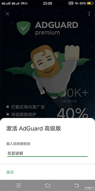 各位手机用户,你在浏览各种网页信息的时候,如果发现一些有趣的页面内容,但是老是弹窗广告影响你的观看怎么办呢,小编为你准备了一个非常不错的工具,它就是adguard广告拦截器,这个工具提供了完善的广告拦截的功能,让用户在使用这个程序进行网页内容浏览的时候不会有任何讨厌的广告干扰你的正常使用,而且这个程序提供了像是短信拦截和电话拦截的功能,这个功能为用户日常使用手机提供了信息拦截的功能支持,让你不会收到任何垃圾信息,大大提升用户日常使用手机的体验,那么各位用户,赶快下载安装这个adguard软件高级版,让你可以不受广告的打扰,特别是你在专心浏览各种网页资讯的时候,任何弹窗广告,或者是各种隐藏的广告都不会影响用户的浏览,赶快试试吧。