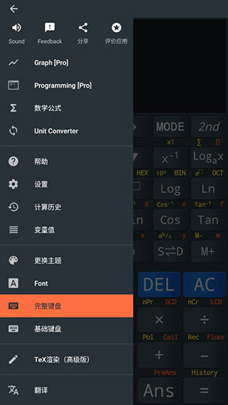 6、科学计算器支持fx 500,fx500,570vn plus,82ms和82 ms,82es&82 es,fx 4500,991es plus,991ms的大部分功能。