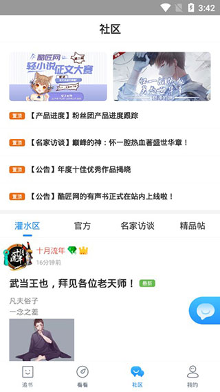 酷匠APP提供了多种用户之间的互动功能,你可以在书评区与作者或者其他读者互动,还可以在社区中分享你感兴趣的话题哦。