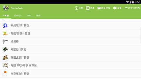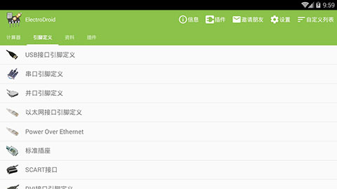 拥有全面的电气计算功能,主要分为电动机、转换、引脚定义、公式、资料等类型,分类非常详细,电气工作者可以根据自己的工作选择适合的计算功能。