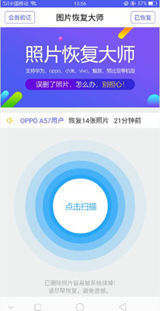 5、使用简单:手机无需ROOT,无需电脑配合,无需专业人员指导,手机点击扫描即可恢复照片至相册