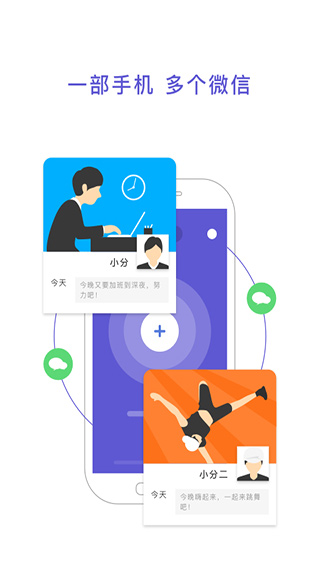 一个微信工作号,一个微信生活号,展示更多面的自己,朋友圈想发什么发什么,再也不用顾虑领导的眼光;遇见红包,只要手速跟得上,想抢几个抢几个;微信双开,微信多开,微信分身变得如此简单。