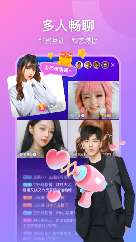 4.平台汇聚众多魅力主播,用户可随时进入心仪主播的直播间进行互动交流,直播间话题丰富,满足用户多元沟通需求。