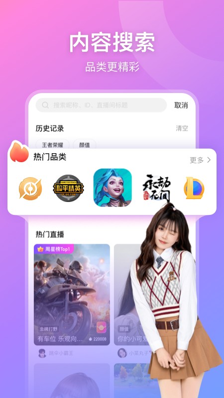 3.平台汇聚了百万高颜值网红,他们随时可能成为你的粉丝,一起连麦畅玩热门游戏。