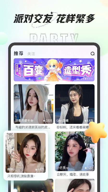 4.打造涵盖娱乐、情感、兴趣等多元领域的语音社交空间,集成弹幕互动、虚拟礼物打赏等功能模块,构建富有趣味性与沉浸感的社交互动生态,持续激发用户社交活力。