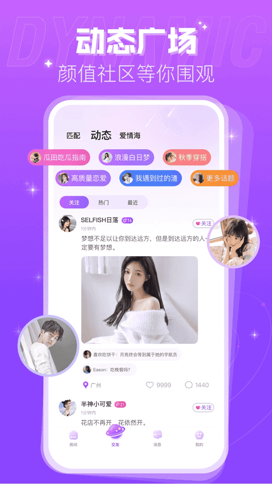 3.专属个性展示空间打破社交次元壁,无论是灵动的动态头像还是别具一格的语音签名,每个细节都成为吸引同频灵魂的磁石,静待双向奔赴的浪漫邂逅。