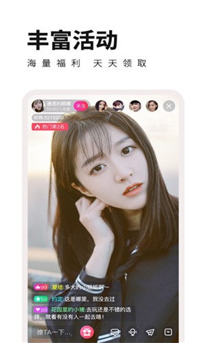 2.构建青春活力社区,弹幕互动、礼物传情,搭配轻量化趣味玩法,串联同好欢乐时光。看直播不止于视听享受,更是一场与知音相遇的社交奇遇。
