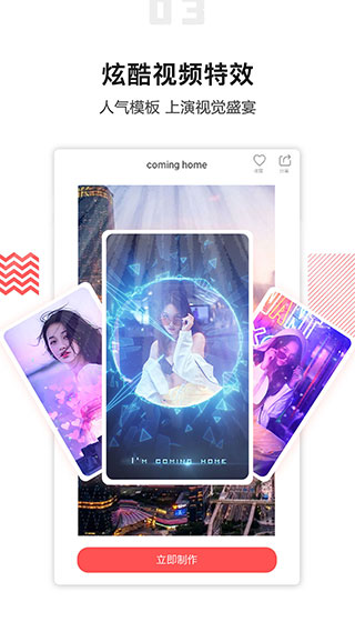 卡点视频、大片特效、实景广告、网红快闪、唯美融图、创意表白、趣味搞笑...海量视频模板任君选择。