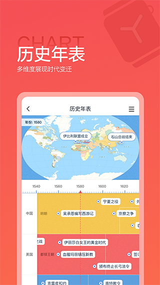 该软件将时间、地图和历史全面结合,多维度的展示长达130亿年的世界史;