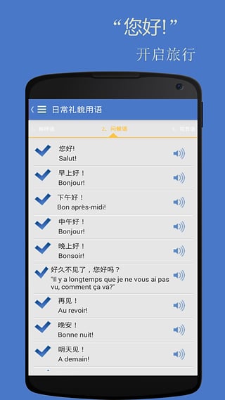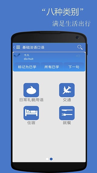 如果你想要到法国周边地区进行旅游,学习一点法语往往可以给你带来意想不到的收获,所以小编为你准备了一个工具,它就是基础法语口语app,这个程序是一个掌上学习平台,可以让想要学习法语的用户,通过一个便捷的掌上平台进行学习,而且这个程序为用户提供了非常优秀的法语基础学习课程,让你可以在这里掌握并了解一些法语的基础,通过这款基础法语口语安卓版全面的教学,你就可以快速掌握法语知识,让你可以在这个平台的帮助下,掌握生活方方面面的基础法语知识,像是基本的问好、问路、买东西等对话内容,你都可以轻松学习,所以这个程序就是很多没有任何法语基础的人都愿意使用的一个工具,如果你也有相同的兴趣的话,那么就来下载安装这个程序,为你提供丰富的法语知识基础吧。