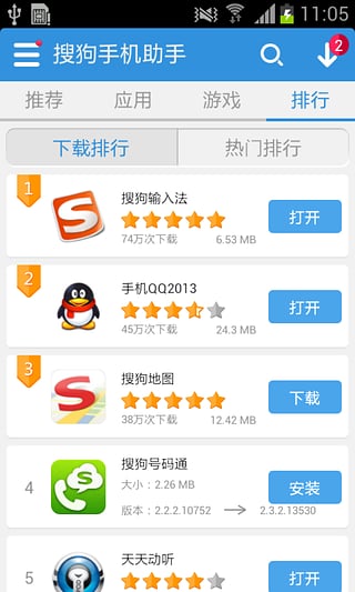 各位手机用户,你们是否需要一个功能全面的手机端应用程序,今天小编为你准备了一个不错的维护管理工具,它就是搜狗手机助手官方版,作为搜狗官方推出的应用管理工具,它的功能足够全面,能够满足用户对于各种应用程序的下载管理需求,而且这个程序为用户提供了非常优秀的应用管理功能,用户不仅可以通过这个程序对目标应用程序进行管理更新,快速卸载,同时也可以让你下载到当下最热门的应用程序,不论是社交聊天的程序,还是各种综合应用,你都可以在这个助手的帮助下,轻松下载安装,另外,如果由一些新鲜的应用上线,这个程序还会为用户进行提醒,让你可以在曾推荐下安装各种各样的优质应用程序,所以各位网友,需要下载最新的应用程序,就来使用这个搜狗手机助手安卓版吧。