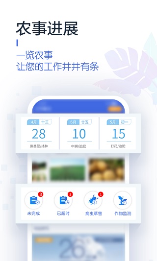 1、实时的记录推送未完成的农事进展,可以选择及时的查看完成;