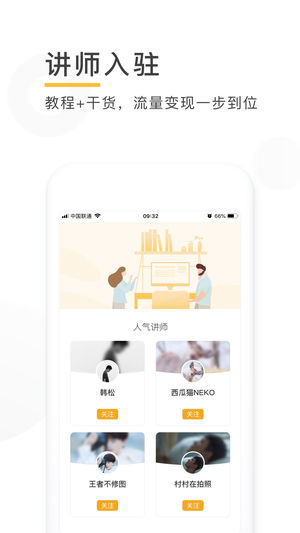 3、严格筛选讲师,为你分享更优质的知识,任意关注专业讲师;