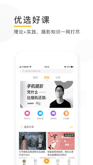 1、海量优质课程,精选摄影干货,让你高效利用碎片时间进行学习;