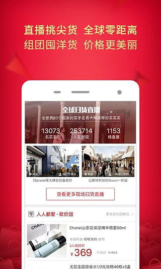 5、体验最真实的海外限时特价血拼每天将直播海外买手在各大折扣卖场的扫货实况。每场扫货限时4-8小时。
