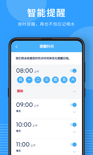 平台会对您的作息时间,饮水情况进行分析,在您的身体需要补充水分时,对您进行提醒,同时支持自定义提醒时间、声音等。