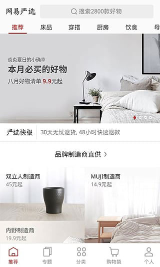 针对用户网购的需求,小编在这里为用户准备了一个非常不错的程序,它就是网易严选app官方版P,这个程序为用户提供了非常优秀的商品推荐功能,让你可以推荐之下购买各种优质商品,并且这个程序为用户提供了各种优惠购物活动,用户可以通过平台报名的方式参与到这些购物活动之中,让你可以使用最少的支出,去选购各式各样的优质商品,并且这个程序为用户提供了各种优惠力度极大的促销活动,像是一些换季商品,用户往往可以通过一个不可思议的价格购买到手,另外这个网易严选软件由网易官方打造,所以在物流方面也是网易官方为用户提供物流的帮助,让你在下达订单以后可以在最短时间收到你需要的商品,所以各位用户不要错过这个程序,赶快下载安装,让它为提供最好的购物帮助吧。